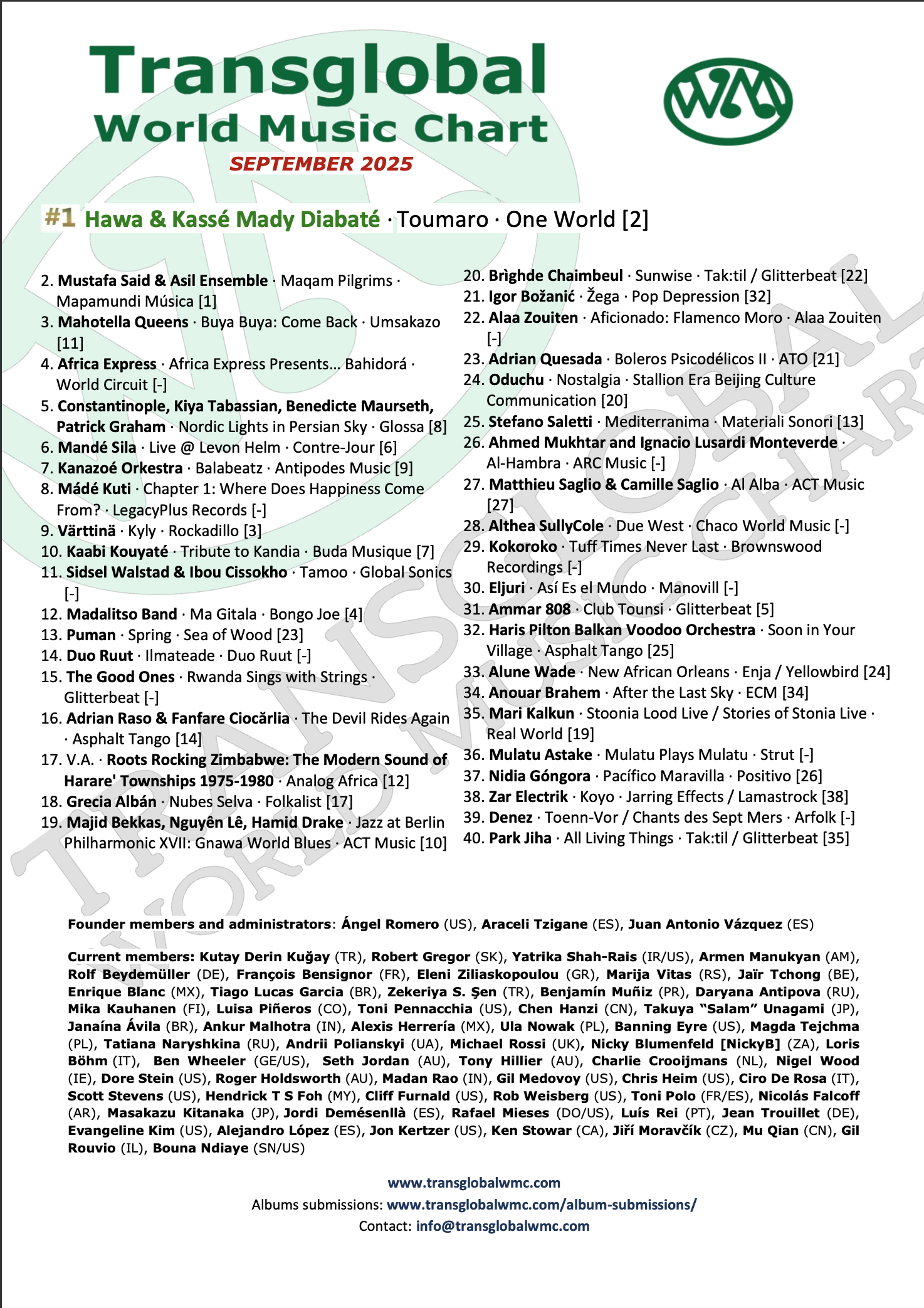 Althea’s debut album Due West (2025) is #28 on the Transglobal World Music Chart for September 2025!